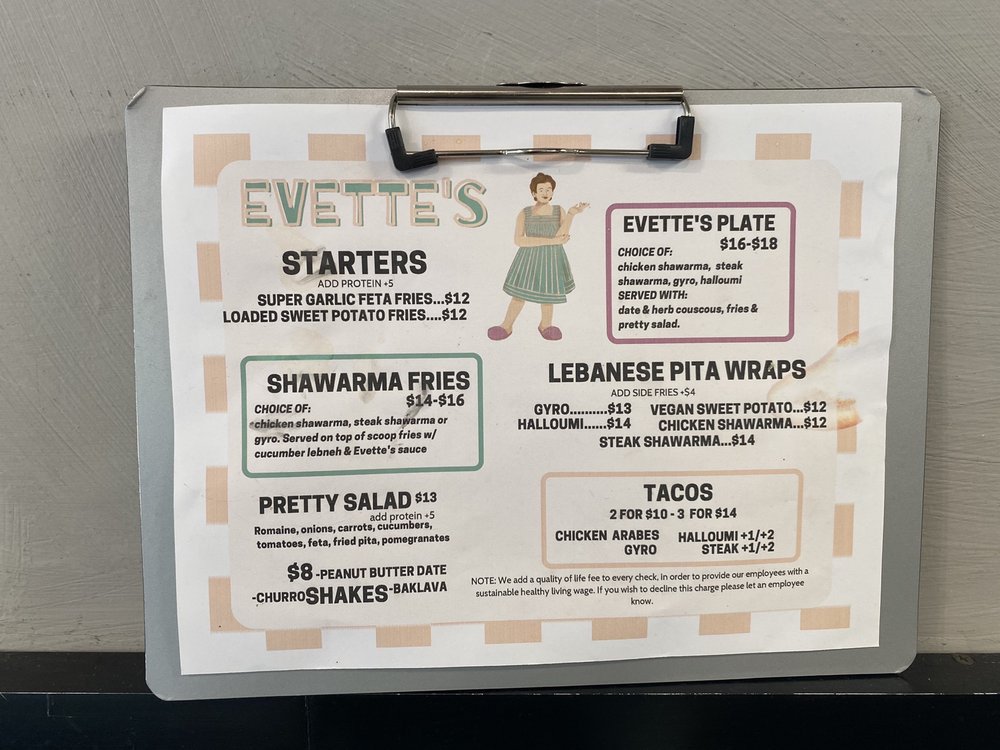 Introducing Evette’s, a Mediterranean-Tacos fusion hotspot located in Chicago. Known for its unique offerings like Haloumi tacos, Shawarma fries, and flavorful bowls, Evette’s caters to those seeking a trendy and casual dining experience. The menu boasts a variety of options from breakfast sandwiches to refreshing beverages like Kombucha and San Pellegrino. Customer reviews rave about the delicious and filling meals, friendly service, and vibrant ambiance. Standout dishes include the malawach wrap with gyro, garlic feta fries, and the Egg & Bacon sandwich. With a focus on fresh ingredients and creative flavor combinations, Evette’s is a must-visit for those looking to satisfy their cravings with a twist. Whether you’re dining in or grabbing takeout, Evette’s offers a memorable culinary experience that leaves customers wanting more.